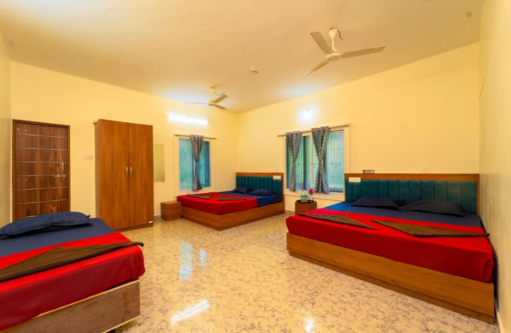 Looking for a peaceful yet budget-friendly stay in Dandeli? Welcome to our warm and homely retreat a perfect blend of comfort, nature, and adventure. Designed to suit every kind of traveler, our Dandeli stay offers affordable sharing rooms for groups and spacious couple rooms for those seeking privacy and relaxation. Take a refreshing dip in the swimming pool, groove to the beats at our rain dance, or savour delicious local and Indian dishes at our in-house restaurant. Surrounded by lush greenery and calm vibes, it’s more than just a stay it’s where you unwind, connect, and make lasting memories in the heart of Dandeli.